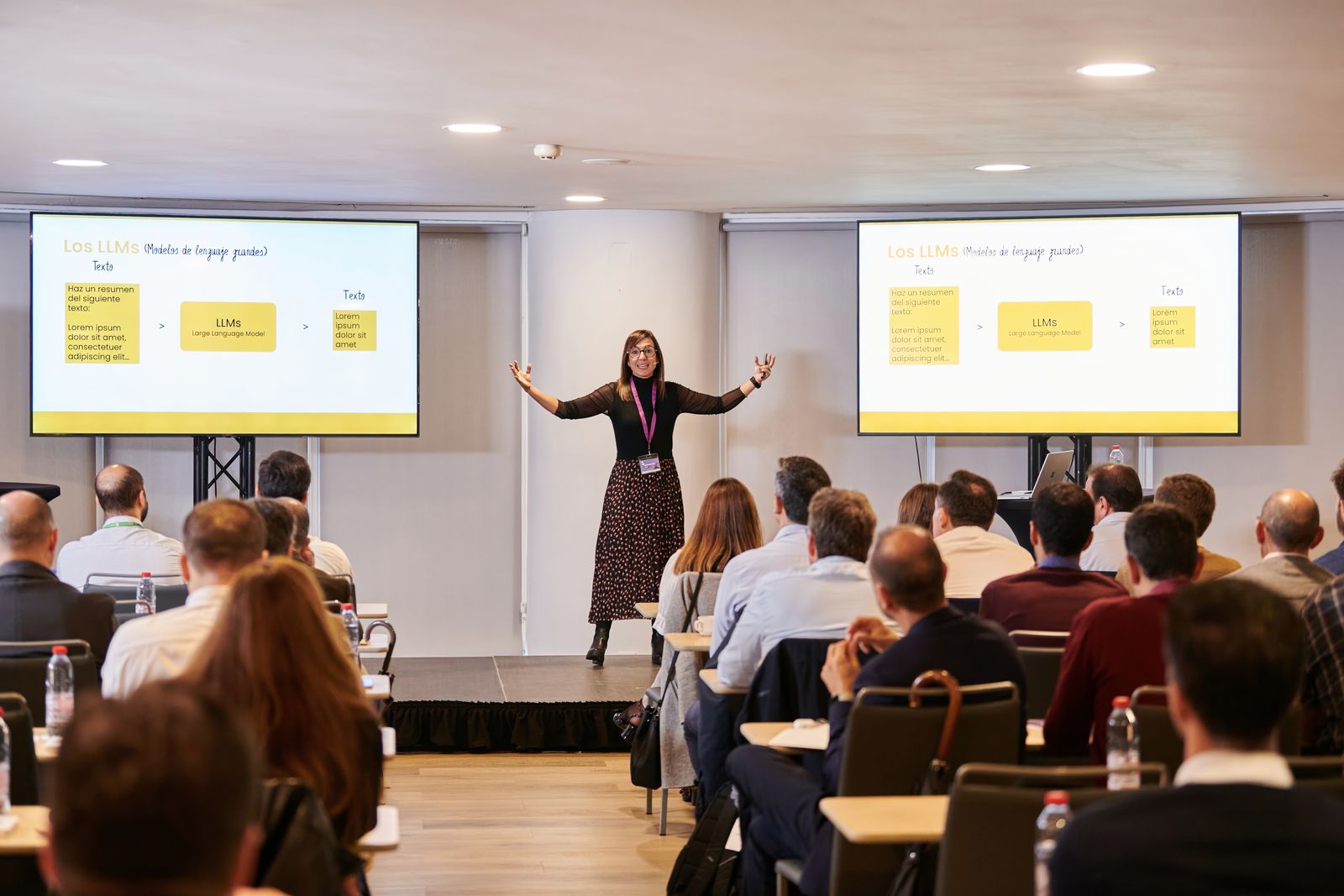 La ponente subrayó que el impacto de la IA no solo radica en ahorrar tiempo, sino en potenciar la creatividad y la calidad del trabajo. También abordó retos como las “alucinaciones” de los modelos de IA y la importancia de una correcta gestión del cambio para aprovechar todo su potencial.
