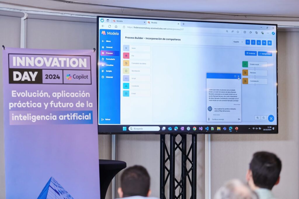 José Miguel López y Paco Romero presentaron cómo la inteligencia artificial puede integrarse en procesos empresariales para aportar valor tangible. Utilizando ejemplos prácticos, destacaron las capacidades de Modela, una solución desarrollada por Midway que facilita tareas como filtrar datos o diseñar procesos completos con instrucciones simples.